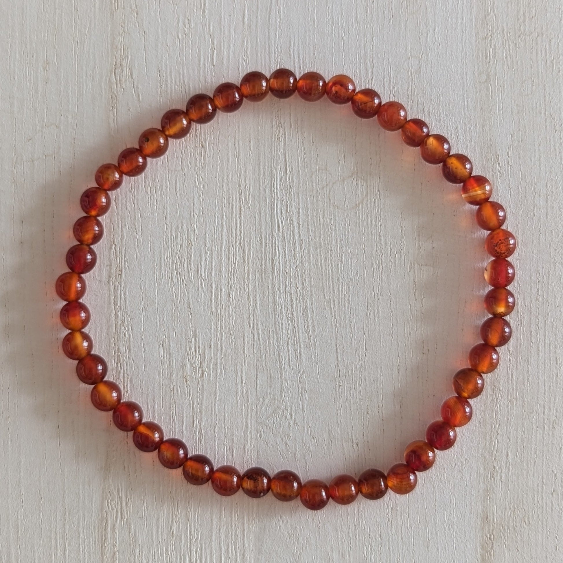 Carnelian round bead bracelet. Beads are 3-4mm. Bracelet purchased will be very similar to the one pictured. Each bracelet comes with its own description card.
