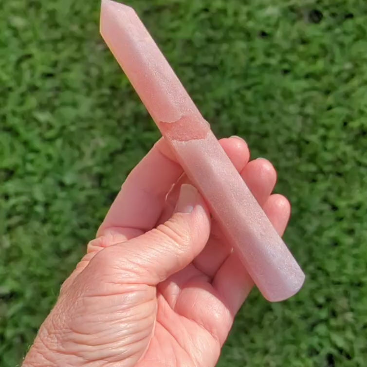 Rose Amethyst Magic Wand with sparkling druzy pocket. 6.125" long x .75" wide. 101 grams.