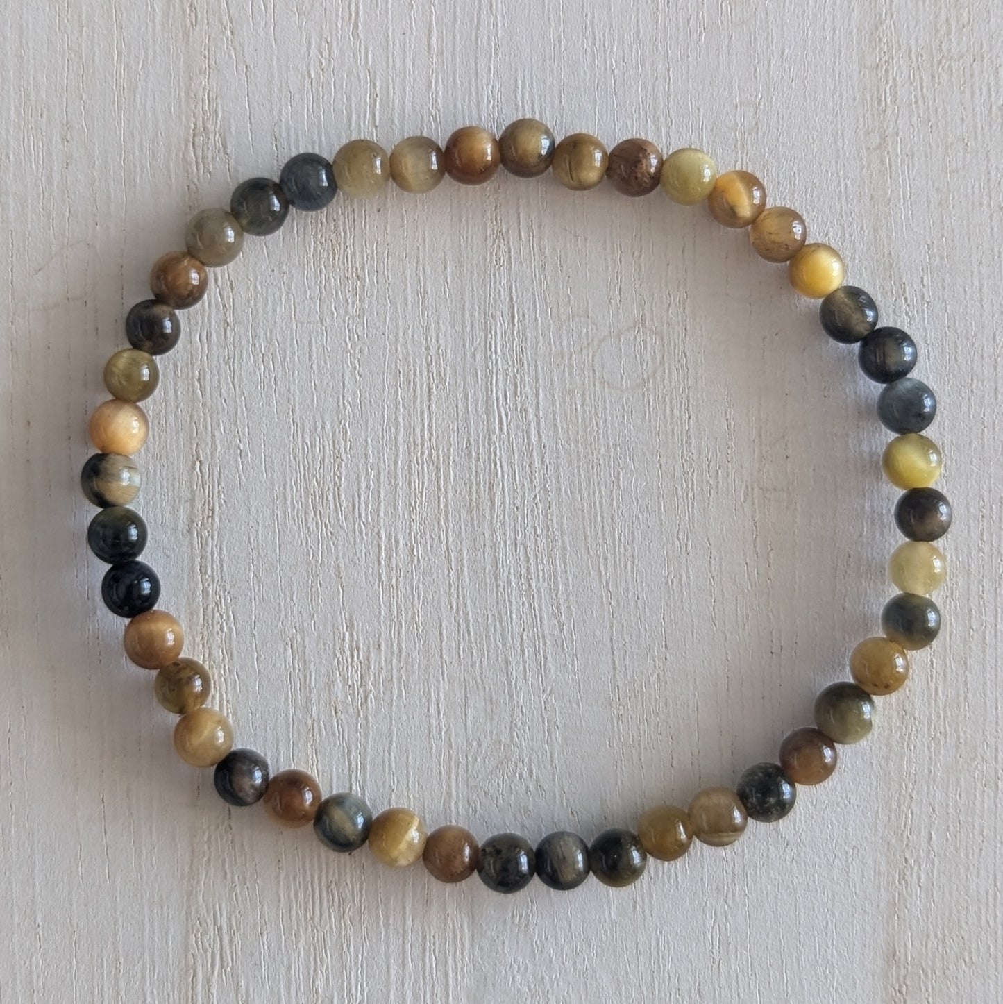Yellow and blue Tiger Eye round bead bracelet. Beads are 3-4mm. Bracelet purchased will be very similar to the one pictured. Each bracelet comes with its own description card.